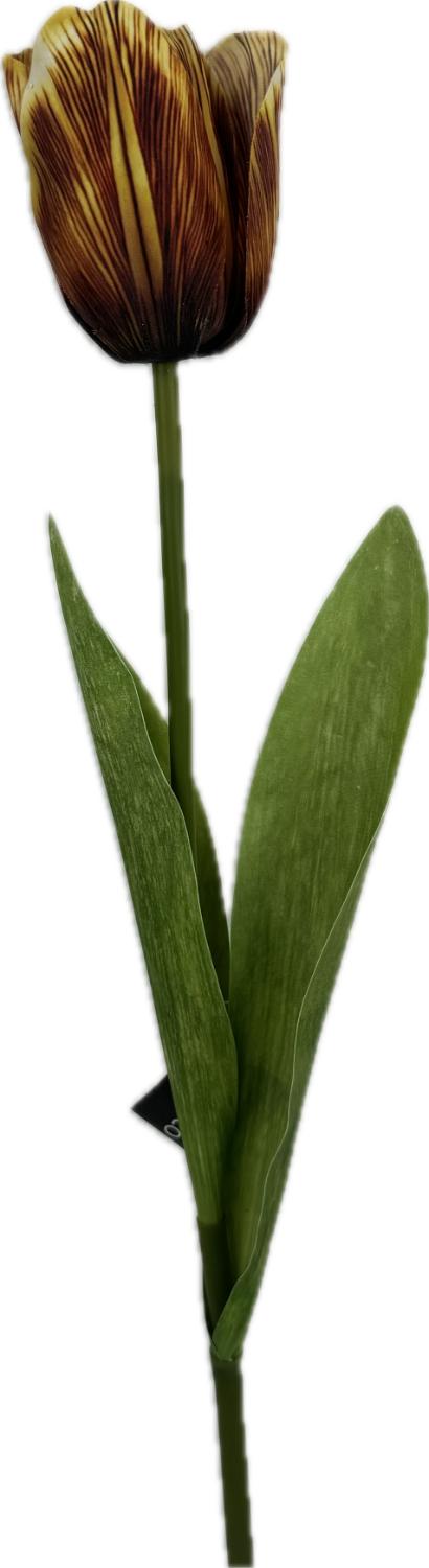 Umělá květina tulipán ve žlutočervené barvě na vysokém stonku. Perfektní pro moderní a elegantní výzdobu interiéru, která nevyžaduje téměř žádnou údržbu