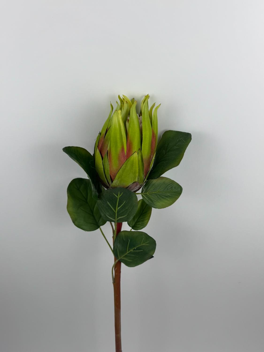 Umělá květina s s velkým zekeným květem a zelenými listy na vysokém stonku. Perfektní pro moderní a elegantní výzdobu interiéru, která nevyžaduje téměř žádnou údržbu.
