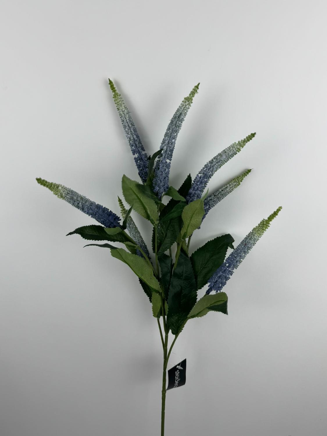 Umělá květina s modrofialovými klasy a tmavě zelenými listy, ideální pro dekorační aranžmá. Přinese eleganci a styl do každého interiéru bez nutnosti údržby.