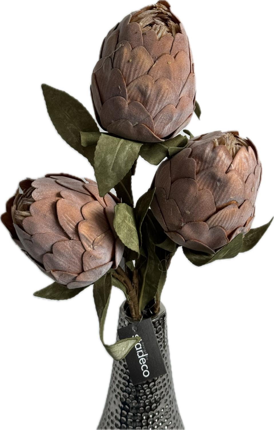 Umělá květina v elegantním oranžovo-hnědém odstínu s jemným pudrovým efektem a realistickými zelenými listy. Díky detailnímu zpracování působí autenticky a dodá interiéru nádech exotiky i luxusu. Perfektní jako solitérní dekorace ve váze nebo součást aranžmá, která si zachová svou krásu s minimem péče.