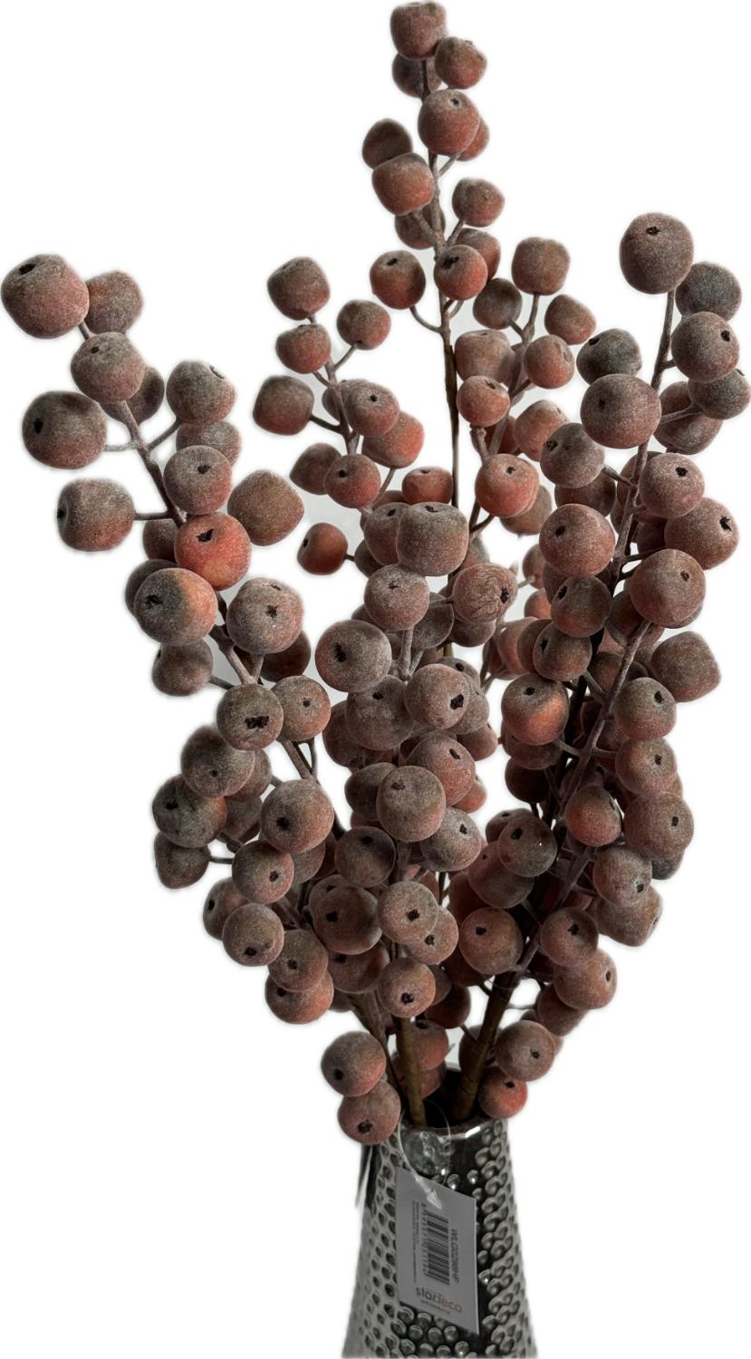 Dekorativní umělá větvička s drobnými bobulemi v jemně zemitých tónech hnědooranžové, doplněná o realistický matný povrch s jemným “pudrovým” efektem. Díky svému přírodnímu vzhledu se skvěle hodí do vázy samostatně i v kombinaci s dalšími aranžmá a vnese do interiéru útulnou, podzimně laděnou atmosféru bez nutnosti údržby.