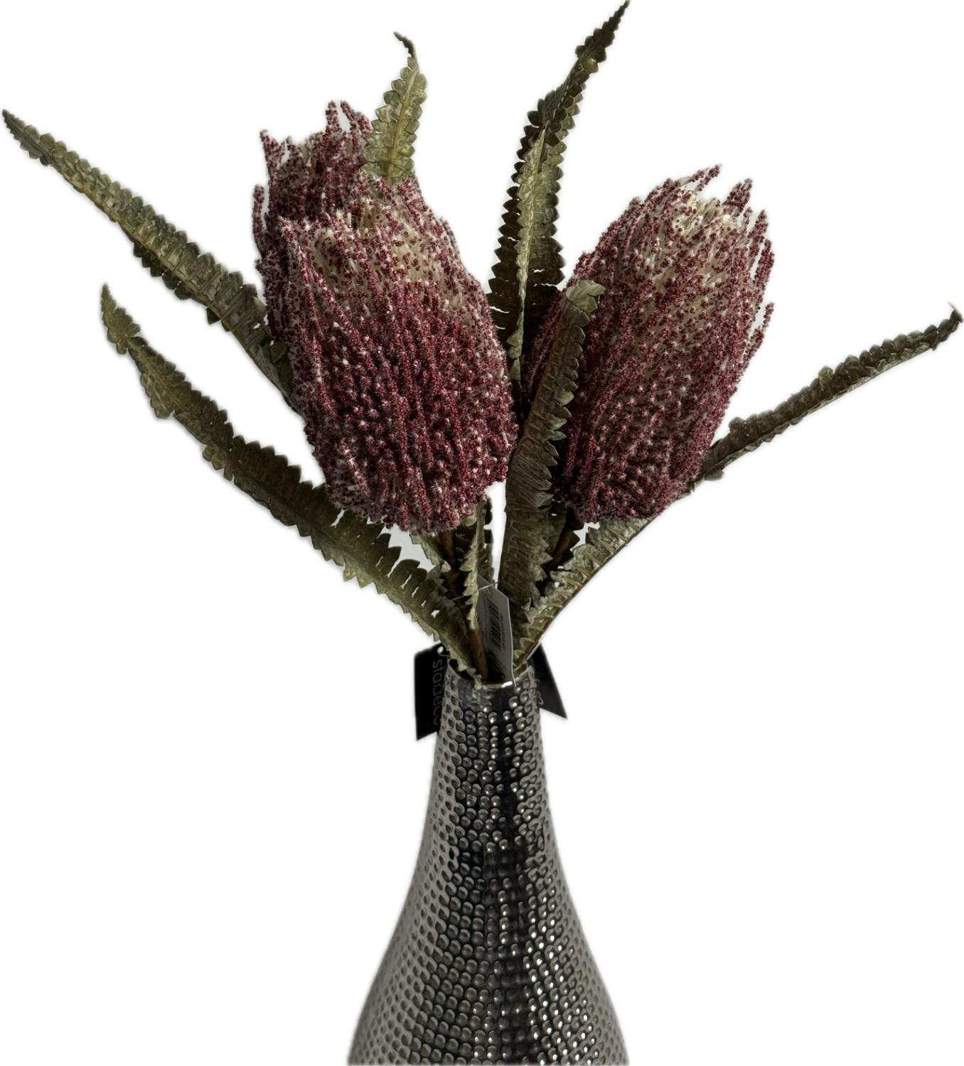 Elegantní umělá květina odstínech vínové a krémové, doplněná realistickými zelenými listy. Díky detailnímu provedení a kvalitním materiálům působí velmi přirozeně a stane se stylovým doplňkem každého interiéru, který si zachová svou krásu bez nutnosti údržby.