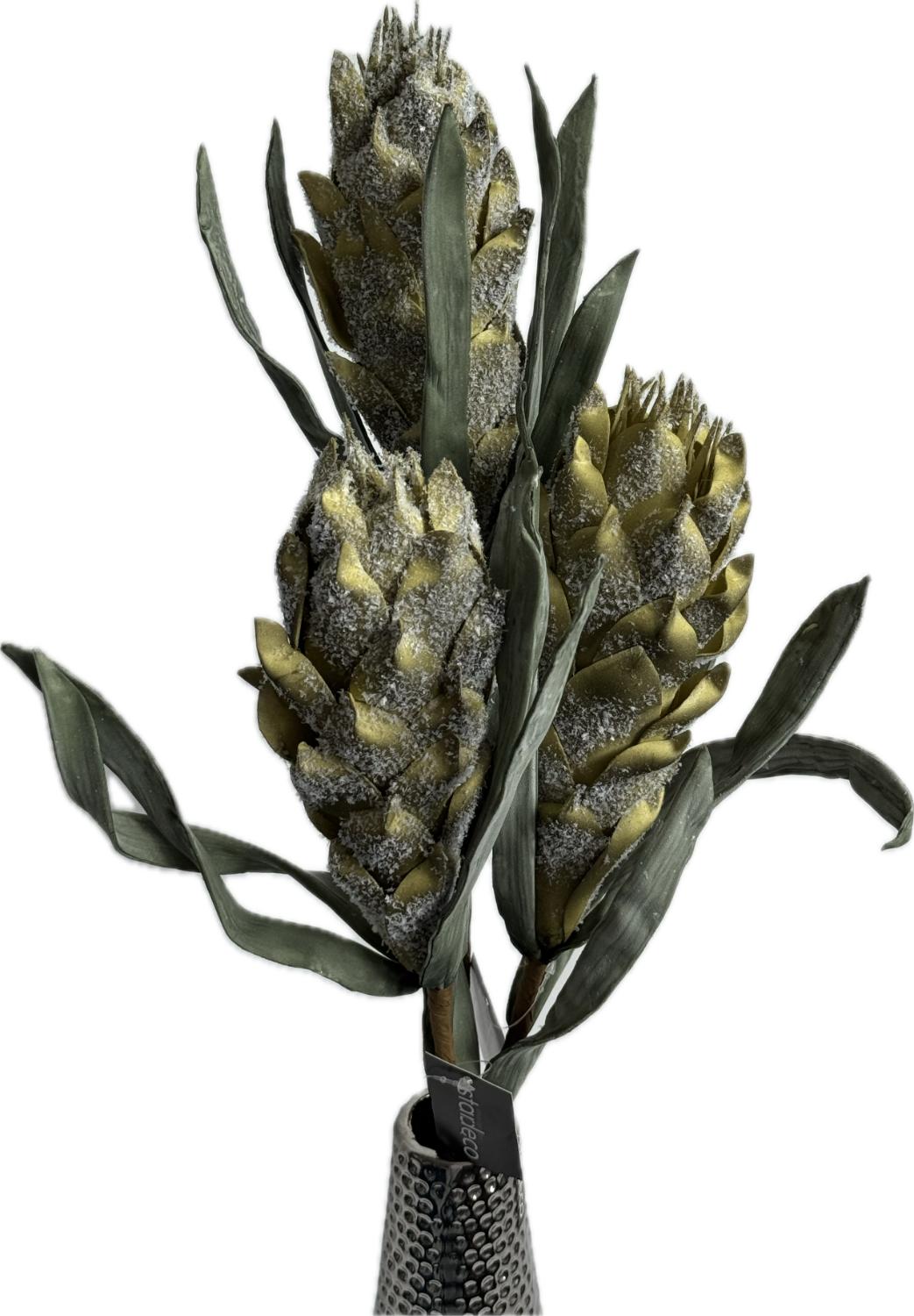 Umělá květina v elegantním zeleném odstínu s jemným pudrovým efektem a realistickými zelenými listy. Díky detailnímu zpracování působí autenticky a dodá interiéru nádech exotiky i luxusu. Perfektní jako solitérní dekorace ve váze nebo součást aranžmá, která si zachová svou krásu s minimem péče.