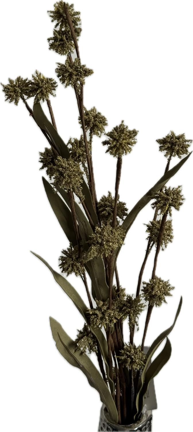 Dekorativní umělá větvička s drobnými bobulemi v jemně zemitých tónech zelené, doplněná o realistický matný povrch s jemným “pudrovým” efektem. Díky svému přírodnímu vzhledu se skvěle hodí do vázy samostatně i v kombinaci s dalšími aranžmá a vnese do interiéru útulnou, podzimně laděnou atmosféru bez nutnosti údržby.